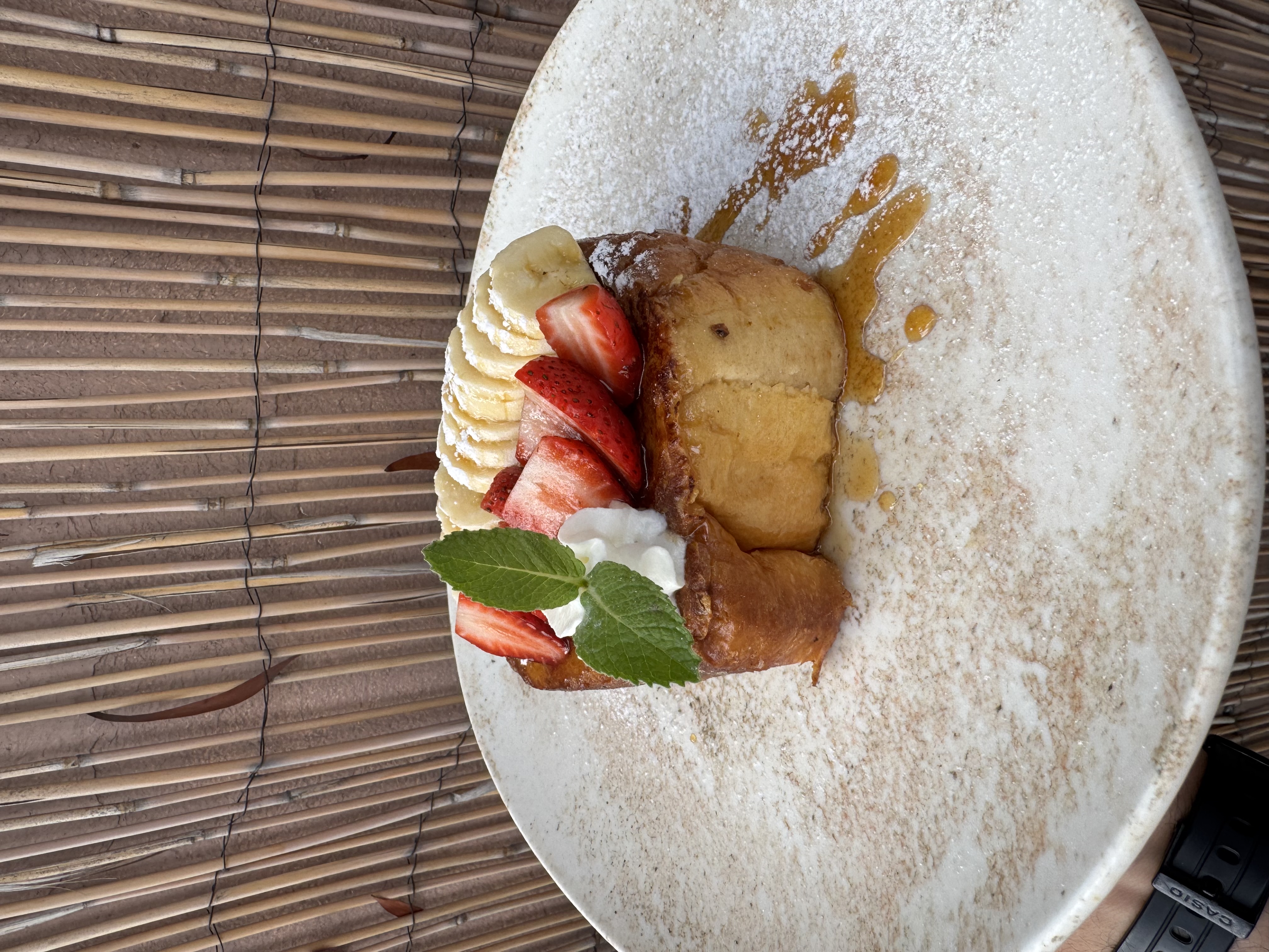 Además, yogurt con granola junto a fruta de la estación y syrup de miel de abeja.